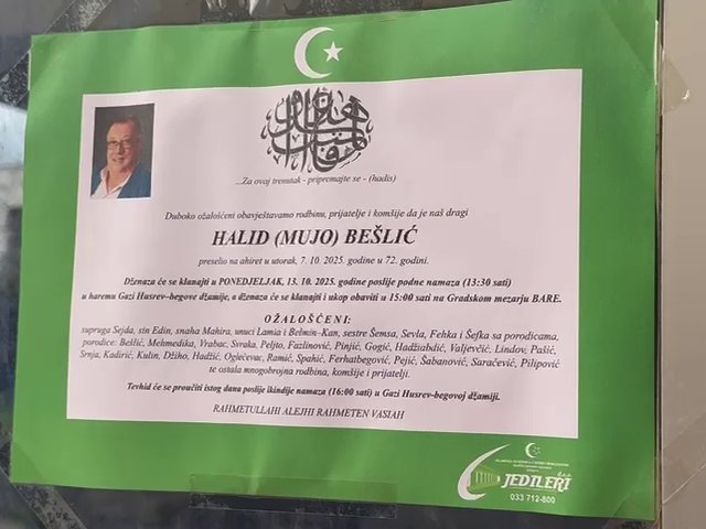 - Sarajevo je najjače kada nam je najteže. Smrt Halida Bešlića je veliki gubitak za Sarajevo. BiH, ai i ceo region. Halid je bio naš brat. On među nama ima prijatelja, rođaka. Besplatna vožnja na sahranu za naše prijatelje iz regona koji su došli sa nama da podele bol je najmanje što možemo učiniti. Sva vozila Sarajevo taksija u ponedeljak imaće na sebi sliku Halida Bešlića - pisalo je u saopštenju.