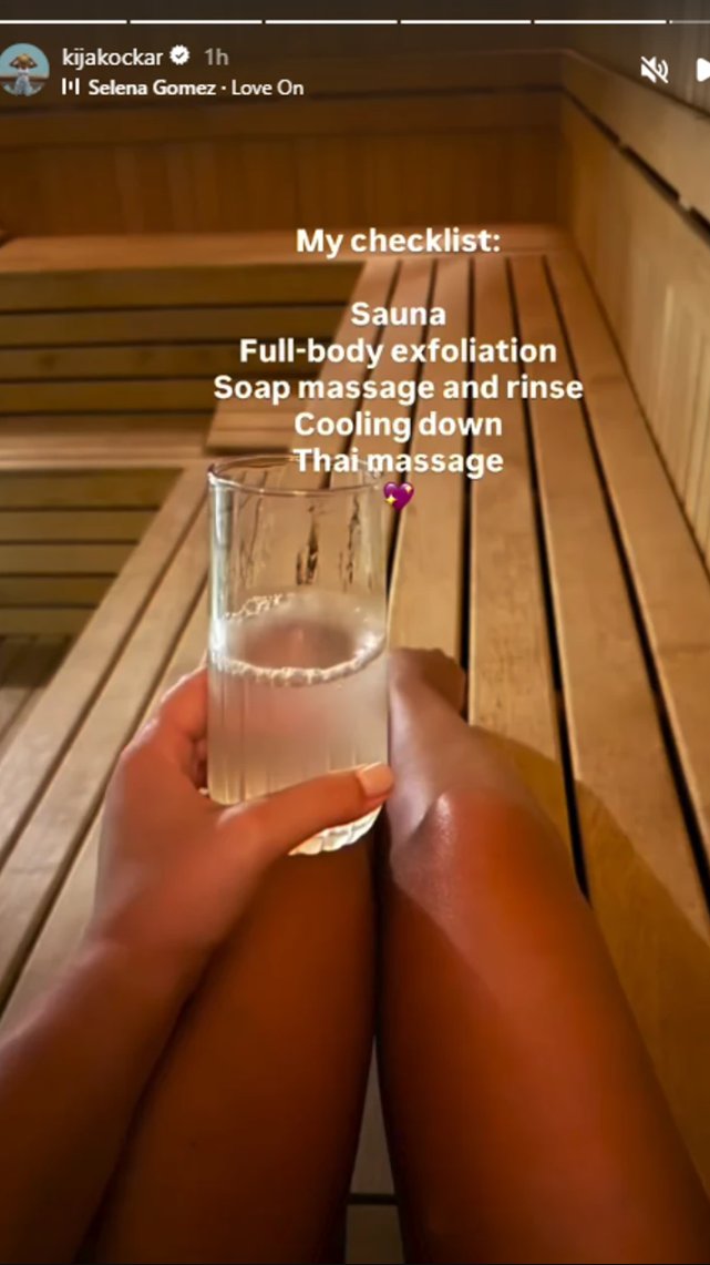 Objasnila je šta sve u njemu radi, pa je napisala da su joj na spisku sauna, masaža sapunom, tajlandska masaža itd. Prvo smo je videli u peškiru, a onda je istakla noge.