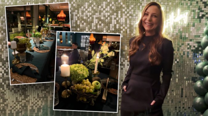 Inače, slavljenica je mislila o svakom detalju, te je enterijer elitnog restorana specijalno dekorisan povodom njenog rođendana. Preovladava smaragdno zelena boja, a za osmišljavanje partija i dekoraciju koja ostavlja bez daha bio je zadužen poznati kreator Mladen Milivojević Baron.