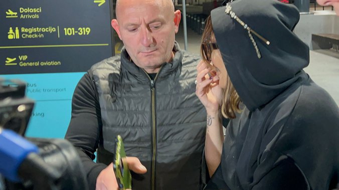 Mi smo je uslikali na aerodromu Nikola Tesla, a ona je imala naočare za sunce i kapuljaču na glavi.