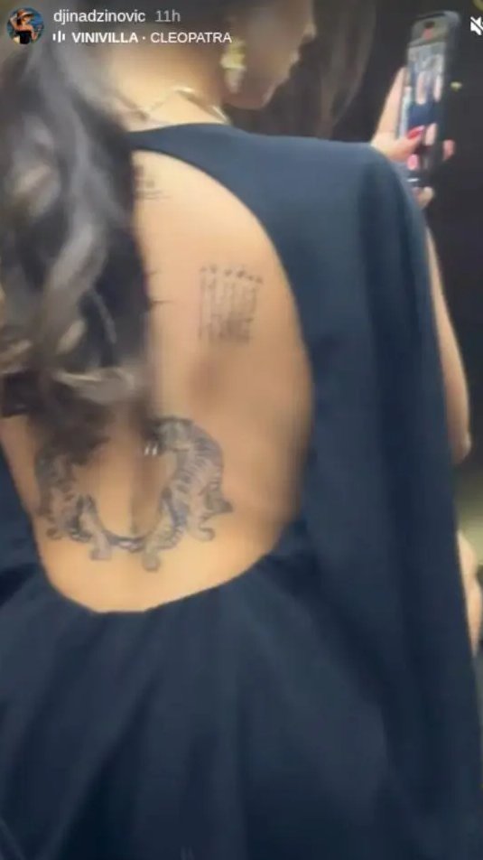 Đina je na svom Instagramu ponosno objavila slike u haljini i tetoviranih leđa, a još nije utvrđeno da li su urađene trajne ili ipak privremene tetovaže.