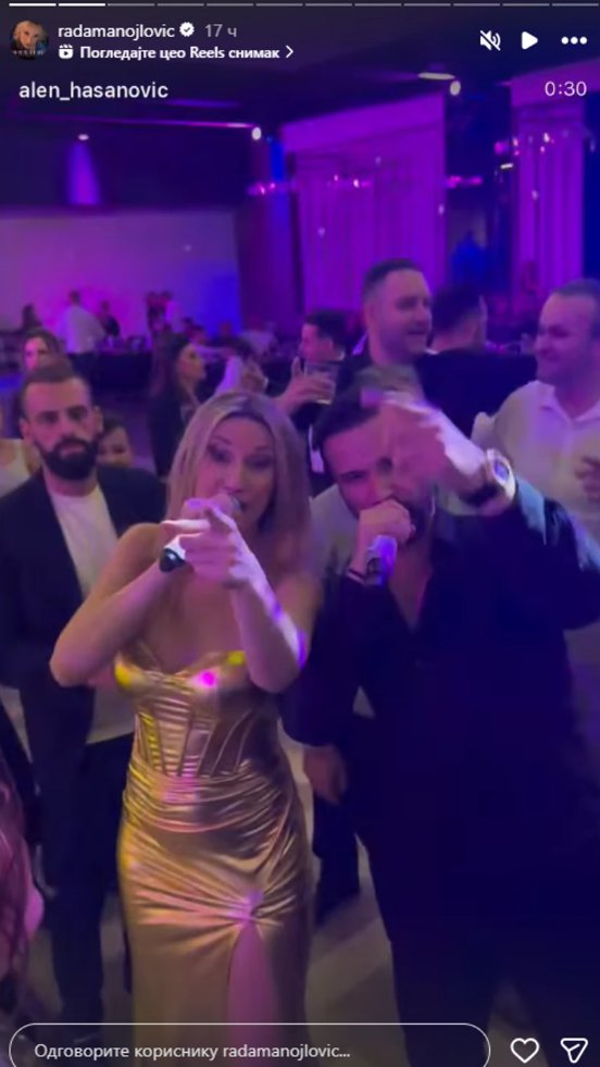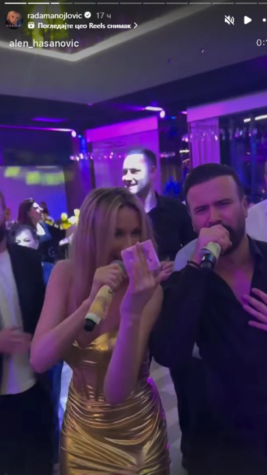Naime, Rada je nastupala sa jednim kolegom, a za ovu priliku odabrala je usku zlatnu haljinu, sa dubokim šlicom i izraženim dekolteom, te je ova odevna kombinacija pratila njenu vitku figuru.
