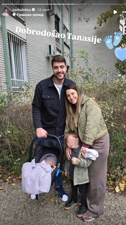 Naime, Aleksa je na Instagramu saopštio da su dobili još jednog sina. On je zatim podelio fotografiju nakon što su izašli iz porodilišta i otkrio da su mlađem nasledniku dali ime Tanasije.