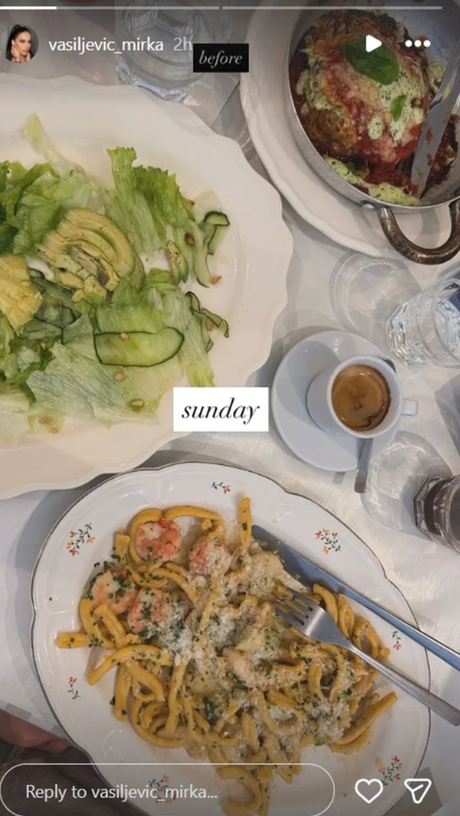 Mirka ovih dana pokazuje kako provodi vreme a posvećena je treninzima, spremanju ukusne hrane što rado deli sa svojim pratiocima. Ona je sada odlučila da pokaže kakav ručak je spremila za nedeljno popodne svojoj porodici.