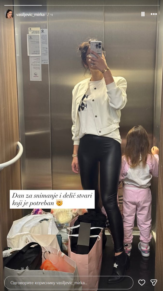 Naime, sada se fotografisala u liftu, objavivši potpuni haos oko sebe, aludirajući na kese i ističući da je to samo deo stvari koje su joj potrebne za neko snimanje koje je imala tog dana, a sve vreme joj je društvo pravila njena ćerka, koja se takođe nalazi na pomenutoj fotografiji.