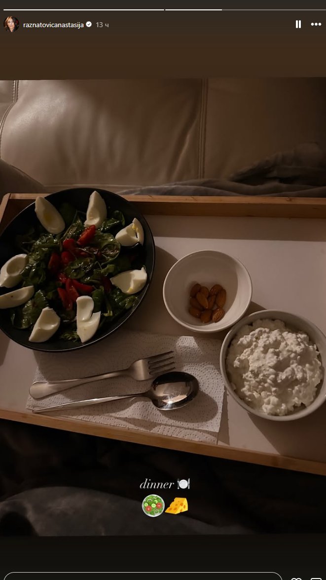 Ovako složen obrok spada u kategoriu laganih, niskokaloričnih večera bogatih proteinima, idealnih za sve koji paze na liniju. Ukupna cena namirnica ne prelazi 400 dinara, što znači da je Anastasija uživala u zdravoj večeri koja nije ni skupa.