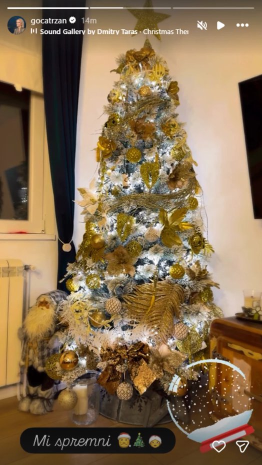 Goca Tržan je sada na mrežama podelila fotografiju iz njihovog doma i pokazala da kod njih već vlada praznična euforija. Goca je snimila veliku jelku koja je smeštena u ugao sobe, a kako možemo videti, ove godine dominiraju ukrasi zlatnih tonova.
