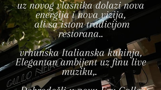 - Uz novog vlasnika dolaze nova energija i nova vizija, ali sa istom tradicijom restorana. Vrhunska italijanska kuhinja, elegantan ambijent uz finu muziku uživo - pisalo je u novoj objavi restorana.
