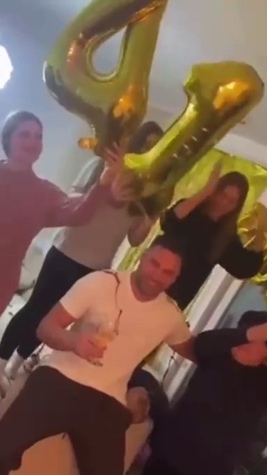 Na Instagramu se pohvalio video snimkom sa ćerkama, majkom i najmilijima koji su se veselili sa njim dok su bacali balone.