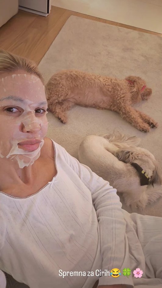 Bez frizure i scenske garderobe, Nataša je pokazala kako izgleda njeno vreme za opuštanje i negu, dokazujući da je briga o koži ključan deo njene rutine lepote. Ona je sela na pod, pored nje su bili kučići i napravila selfi u ambijentu koji joj najviše prija.