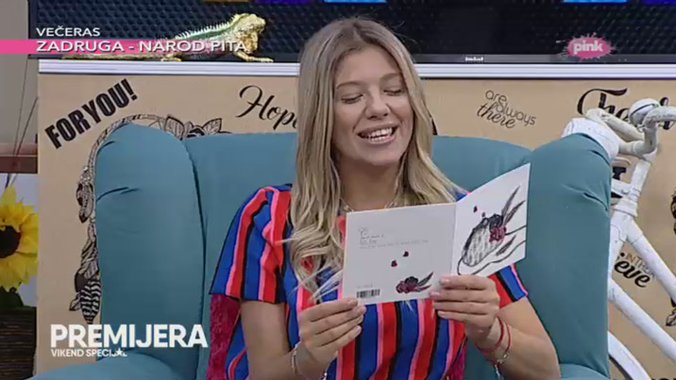 Hrabroj Kiji, budu pametna, s ljubavlju Milica Pavlović - pročitala je Kija posvetu i prokomentarisala je: Ovo nisam očekivala, bilo mi je dovoljno što sam je videla i pozdravila se sa njom! - izjavila je Kija.
