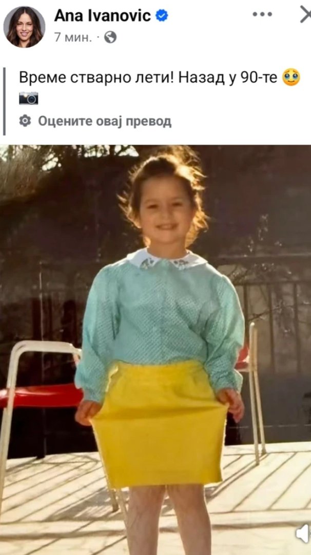 Ana Ivanović, nekadašnja teniska šampionka i omiljeno lice domaće javnosti, pridružila se popularnom trendu na društvenim mrežama „Kako ste izgledali 90-ih“. Objavila je fotografije iz detinjstva, koje su oduševile njene pratioce, a izazov je započela rečima: „Mama, kako si izgledala 90-ih?“.