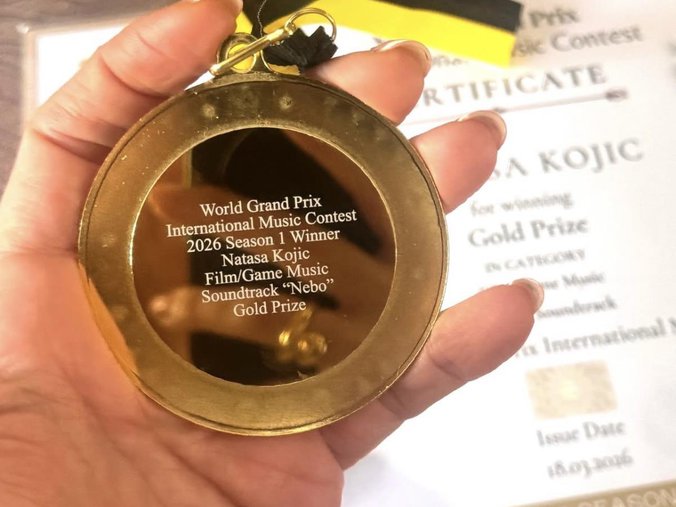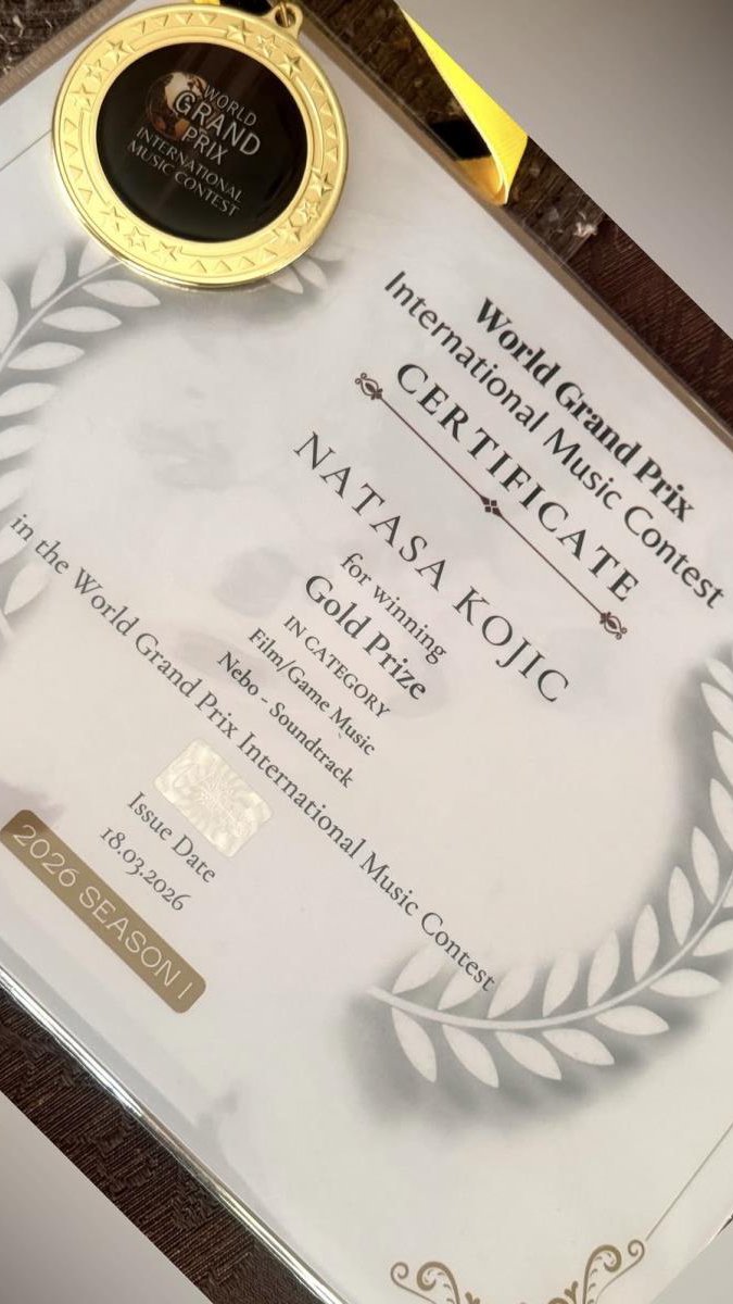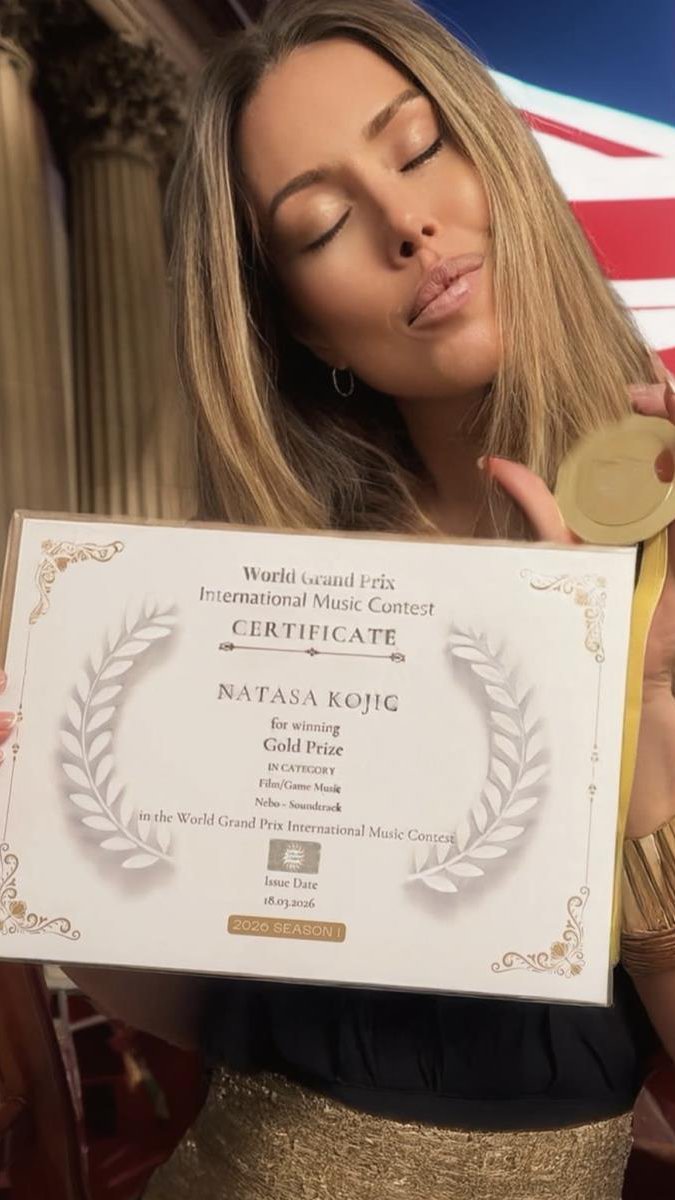 Nataša Kojić, koja profesionalno deluje između Los Anđelesa i Evrope, osvojila je Zlatnu nagradu za originalni saundtrak "Nebo" u kategoriji filmske i gejming muzike (Film/Game Music) na World Grand Prix International Music Contest 2026, međunarodnom takmičenju sa sedištem u Londonu.
