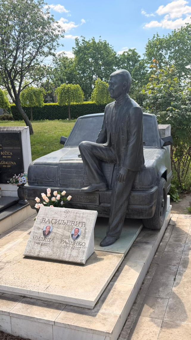 Spomenik koji se nalazi na njegovom grobnom mestu izrađen je u nesvakidašnjem obliku – u formi automobila, što ima snažnu simboliku jer je upravo u automobilu i izgubio život. Ovaj jedinstveni dizajn čini ga jednim od prepoznatljivijih spomenika na groblju, a mnogi posetioci ga zapažaju upravo zbog njegove emotivne i umetničke forme.