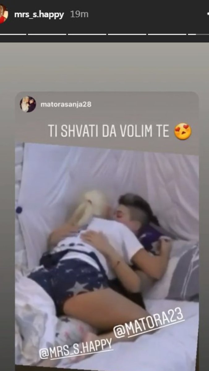 Sanja je na društvenoj mreži Instagram u vidu storija okačila kratak video na kojoj je kompilacija vrelih i strastvenih momenata između nje i Matore.
