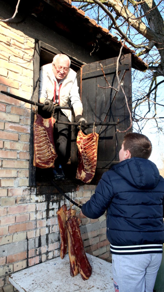 Kod nas je sve domaće, zdravo. Imamo svinje, koze, guske, kokoške. Posebno sam ponosan na slaninu i suvo meso koje dolazi iz moje pušnice. To je sve preukusno, možete da probate kasnije - rekao nam je domaćin.