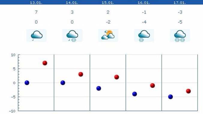 Jutarnja temperatura biće od minus devet do nula stepeni, najviša dnevna od četiri na jugoistoku do 10 na zapadu, u Timočkoj Krajini oko minus dva stepena. Uveče i u toku noći uz pad temperature kiša će preći u susnežicu i sneg i u nižim predelima.