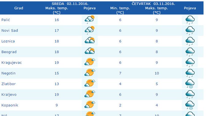 U Beogradu se očekuje toplije vreme, prepodne pretežno sunčano, poslepodne naoblačenje, uveče i noću kiša. Duvaće slab i umeren, južni i jugozapadni vetar. Najniža temperatura pet, najviša 18 stepeni.