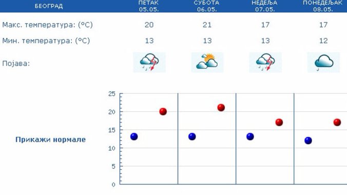 Izgledi vremena u Srbiji u narednih sedam dana, do 12. maja: