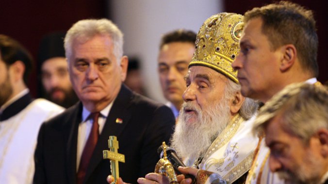 Patrijarh sprski Irinej i predsednik Srbije Tomislav Nikolić položili su danas prvi kamen mozaika Vaznesenja gospodnjeg u spomen hramu Svetog Save na Vračaru.