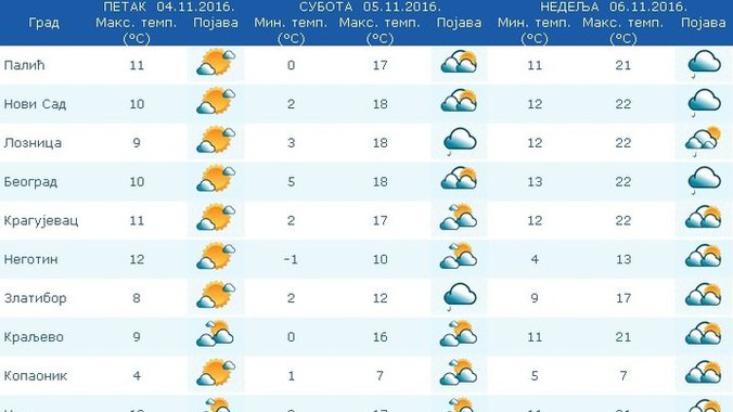 Jutarnja temperatura biće od minus 1 C do plus 6 C, a najviša dnevna od 15 C do 19 C, u Timočkoj Krajini oko 10 C.