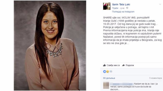 Policija je uključena u potragu, a prema informacijama koje policija ima, Marija nije napustila državu, ni kopnenim ni vazdušnim putem!
