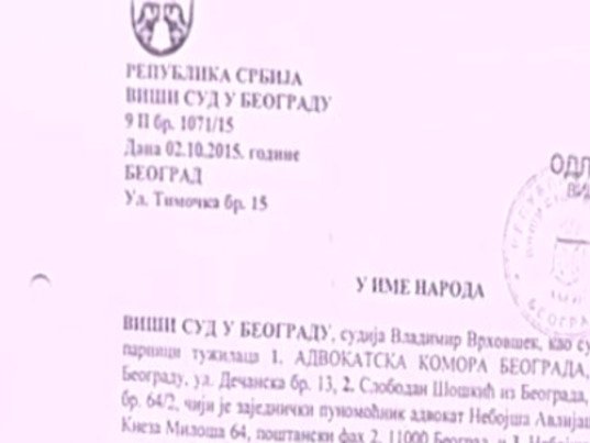 On je pokazao odluku "koja se odnosi na inicijatora i rukovodioca, nepostojećeg predsednika Advokatske komore Srbije, koji rukovodi nasilničkom grupom".