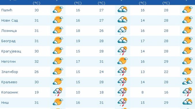 Najviša dnevna temperatura biće od 27 do 31 stepen.