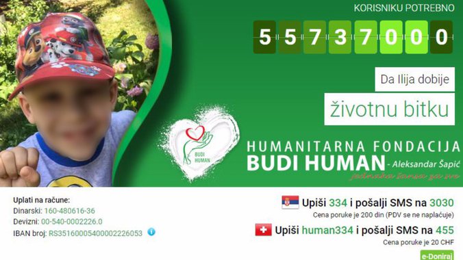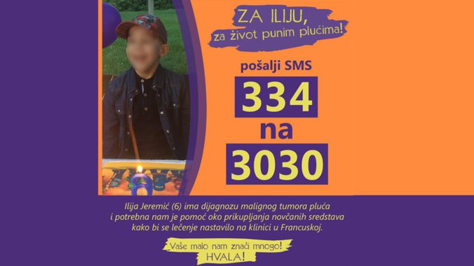 Pošaljite SMS 334 na 3030 za pomoć malom Iliji.