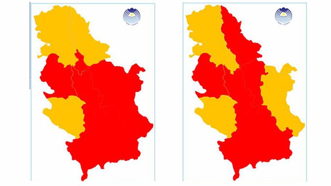 Crveni meteo alarm i to sutra u Zapadnoj Srbiji, Šumadiji, Pomoravlju, Jugoistočnoj Srbiji, Jugozapadnoj Srbiji i Kosovu i Metohiji.