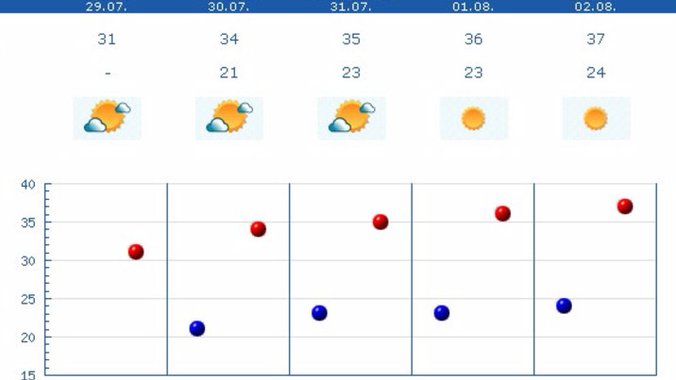 Kako se navodi na sajtu RHMZ, od ponedelјka će biti veoma toplo sa najvišom temperaturom u intervalu od 35 do 38 stepeni.