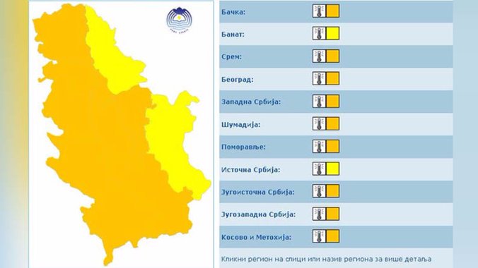 O visini temperature vazduha narednih dana govori i meteoalarm. Od današnjeg zelenog i žutog, koji ne ukazuje na posebne vremenske prilike, već sutra i prekosutra na snazi će biti narandžasti meteoalarm.