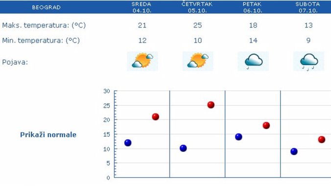 U Srbiji u četvrtak pretežno sunčano i toplije. U petak naoblačenje s kišom. Za vikend oblačno, hladno i kišovito sa pojačanim severnim vetrom. Na visokim planinama sneg. Početkom naredne sedmice temperatura u manjem porastu.