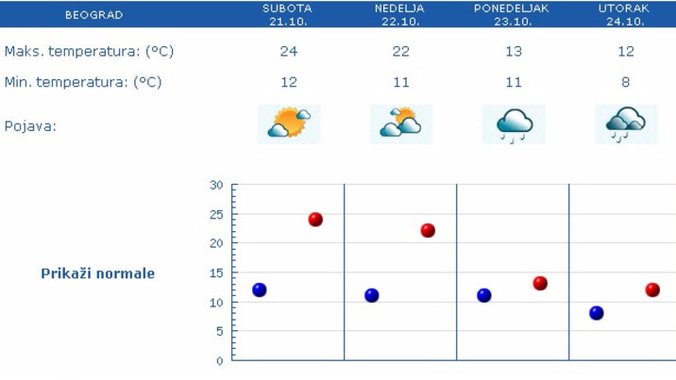 Jutarnja temperatura biće od tri do 12, najviša dnevna od 22 do 27 stepeni.