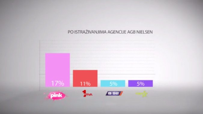 Televizija Pink je i ove srede bila najgledanija komericijalna televizija u Srbiji, posebno među ženama u udarnom terminu, kada je bila gledanija od svih komercijalnih televizija zajedno, ali i Javnog servisa, pokazuju zvanična istraživanja agencije AGB Nielsen Audience Measurement.