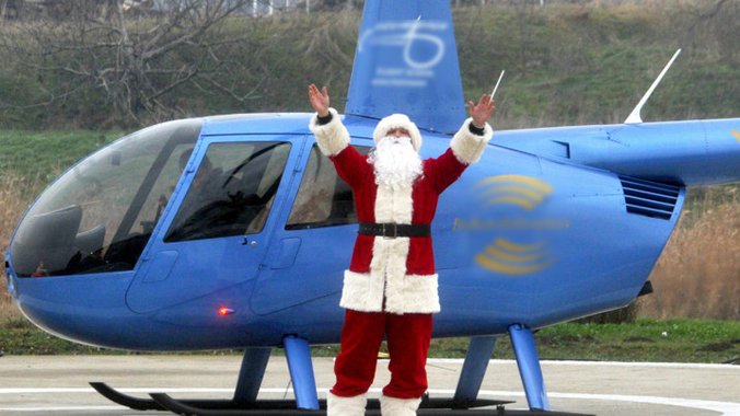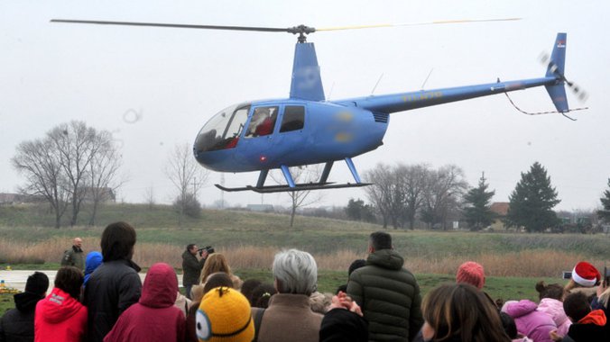 Oduševljena deca pozdravila su letećeg Deda Mraza na heliodromu u Dobanovcima, a vešti Deda Mraz, odnosno pilot Goran Krneta, nakon nekoliko krugova sleteo je i podelio slatke paketiće uzbuđenim mališanima.