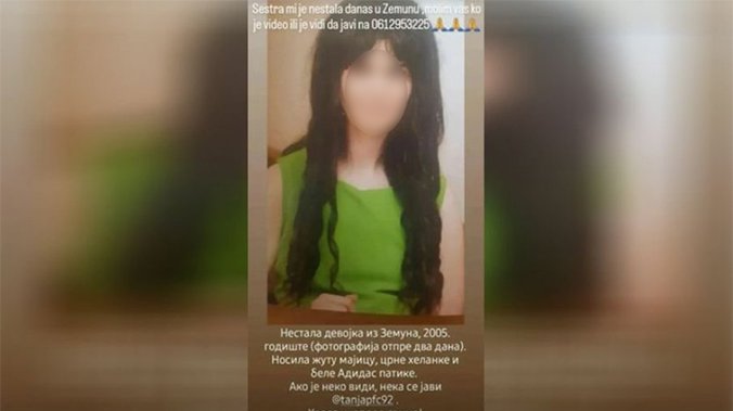 Tinejdžerka Sanja T. (18) koja je nestala juče u Zemunu, pronađena je.