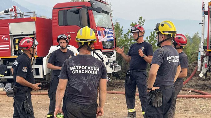 Ekipa od 36 vatrogasaca-spasilaca sa 14 vozila, kao i dva pripadnika medicinskog tima sa sanitetskim vozilom, biće uključeni u gašenje požara koji već osam dana divlja na Rodosu.