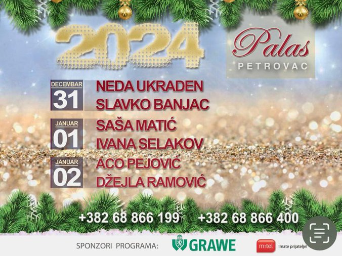 Hotelska grupa „Budvanska rivijera“ i ove godine u velikom stilu organizuje svečani doček Nove godine u hotelu Palas u Petrovcu. Za ovaj prestižni događaj koji okuplja najveće regionalne muzičke zvijezde kažu da je najbolji u regionu i da svake godine pomijera granice kada su u pitanju muzički program, organizacija, atmosfera, gastro ponuda.