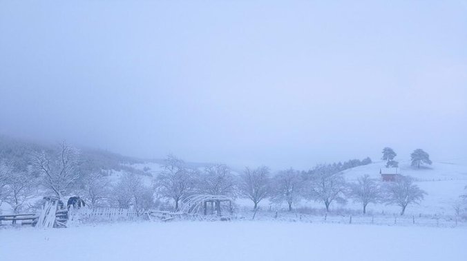 Na teritoriji opštine Lučani sneg pada već nekoliko sati, a visina snežnog pokrivača u višim predelima Dragačeva je od pet do deset centimetara.