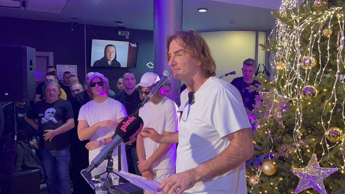 Željko Mitrović, vlasnik i osnivač Pink Media Group - organizovao je novogodišnju žurku za sve zaposlene na Pinku.Tom prilikom, obratio se zaposlenima i poželeo dobrodišlicu.