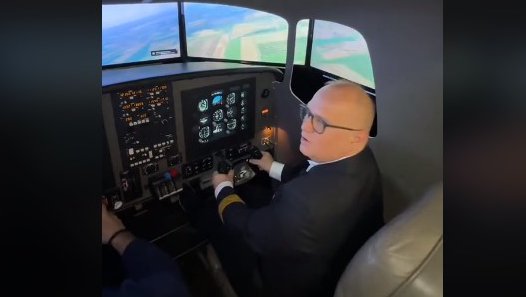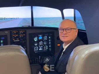 - Kao što vidite kontrolna tabla prikazuje sve komande koje postoje u avionu. Ovde može da se simulira letenje jednomotornim, višemotornim avionima. Ovo pred nama je pravi prikaz neba nad Beogradom odnosno sletanja na aerodrome Batajnica, Nikola Tesla