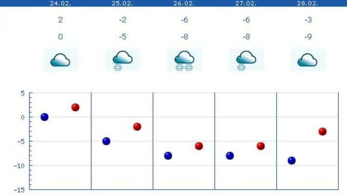 Ledeni dani trajaće do četvrtka, 1. marta. U većini mesta temperatura će biti od minus 12 do minus pet stepeni, a najviša dnevna temperatura od minus šest do minus dva stepena.
