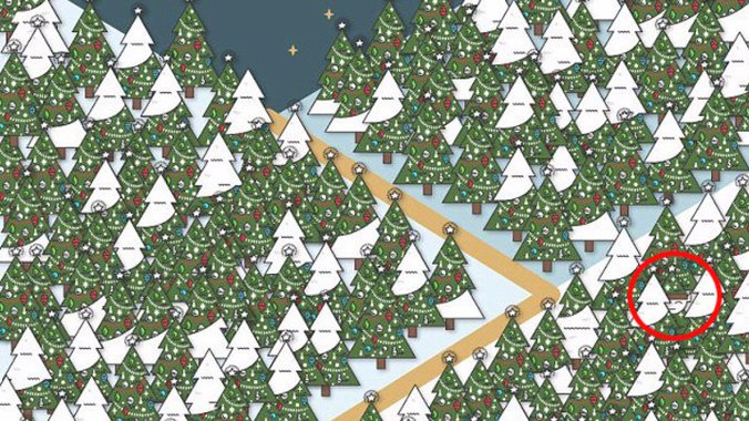 Među brojnim jelkama potrebno je pronaći patuljka.