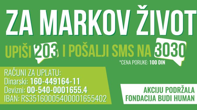 Ne čekajte da neko drugi pošalje SMS, jer je svaki minut bitan. Pomozimo Marku da pobedi!