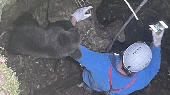 Ovaj hrabri čovek nije časio časa, već je kao iskusni speleolog pod punom opremom i uz pomoć užeta spustio se u jamu duboku preko deset metera i uplašenu životinju izvukao na sigurno.