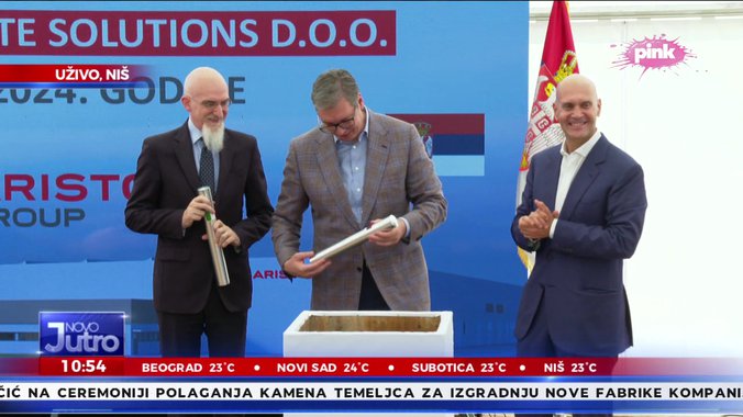 Sada je 2024. godina, kamen temeljac, od 2025. godine 240 miliona evra biće izvoz, 300 ljudi zaposleno, velika i važna kompanija za Niš. Otvorili smo osam, Ariston je posebno pitanje, to je velika italijanska kompanija, srećan sam i zahvalan svima koji su doneli tu odluku.