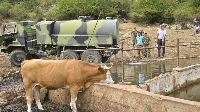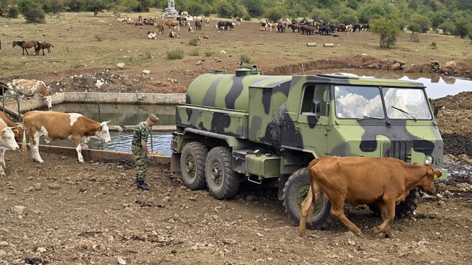 Na ovom zadatku angažovani su pripadnici Kopnene vojske sa dve cisterne, koji u više tura tokom dana dopremaju vodu za oko 1.000 ugroženih konja i krava.