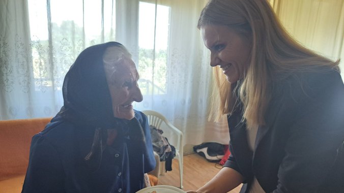 Baka Živka je dočekala predsednicu stojeći, kako to naši stari običaji nalažu, iako se kreće uz pomoć pomagala, sa poštovanjem i širokim osmehom na licu i još većim zagrljajem zahvalnosti za predsednicu.