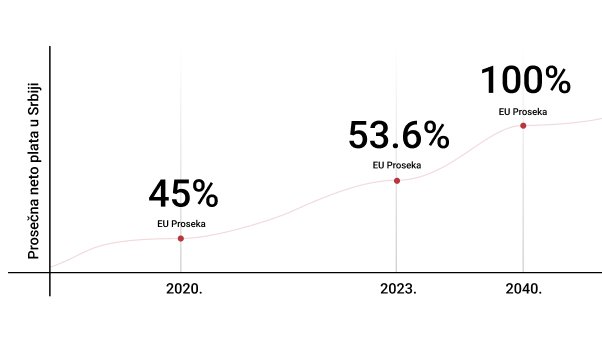 Iako mnogima ovo izgleda kao utopija, valja imati u vidu da je u prvoj polovini ove godine prosečna neto zarada u Srbiji već dostigla 826 evra, tako da je taj zaostatak, čak i uz pretpostavku da su u EU plate nominalno povećane za sedam odsto (za inflaciju od 2,8 i realno za 4,2 odsto), dodatno smanjen na oko 43,5 odsto ili za skoro tri procentna poena. I to samo u prvoj polovini ove godine, a nastavak tog trenda poguraće i odluka da se minimalna zarada od naredne godine u Srbiji poveća za rekordnih 13,7 odsto.